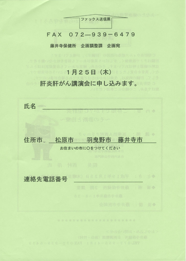 ☆羽曳野市、松原市、在住の方は、藤井寺市の医療機関でもこの予防接種を受ける事が出来ます。ただし羽曳野市在住の方は12月末日までですので、ご注意下さい。